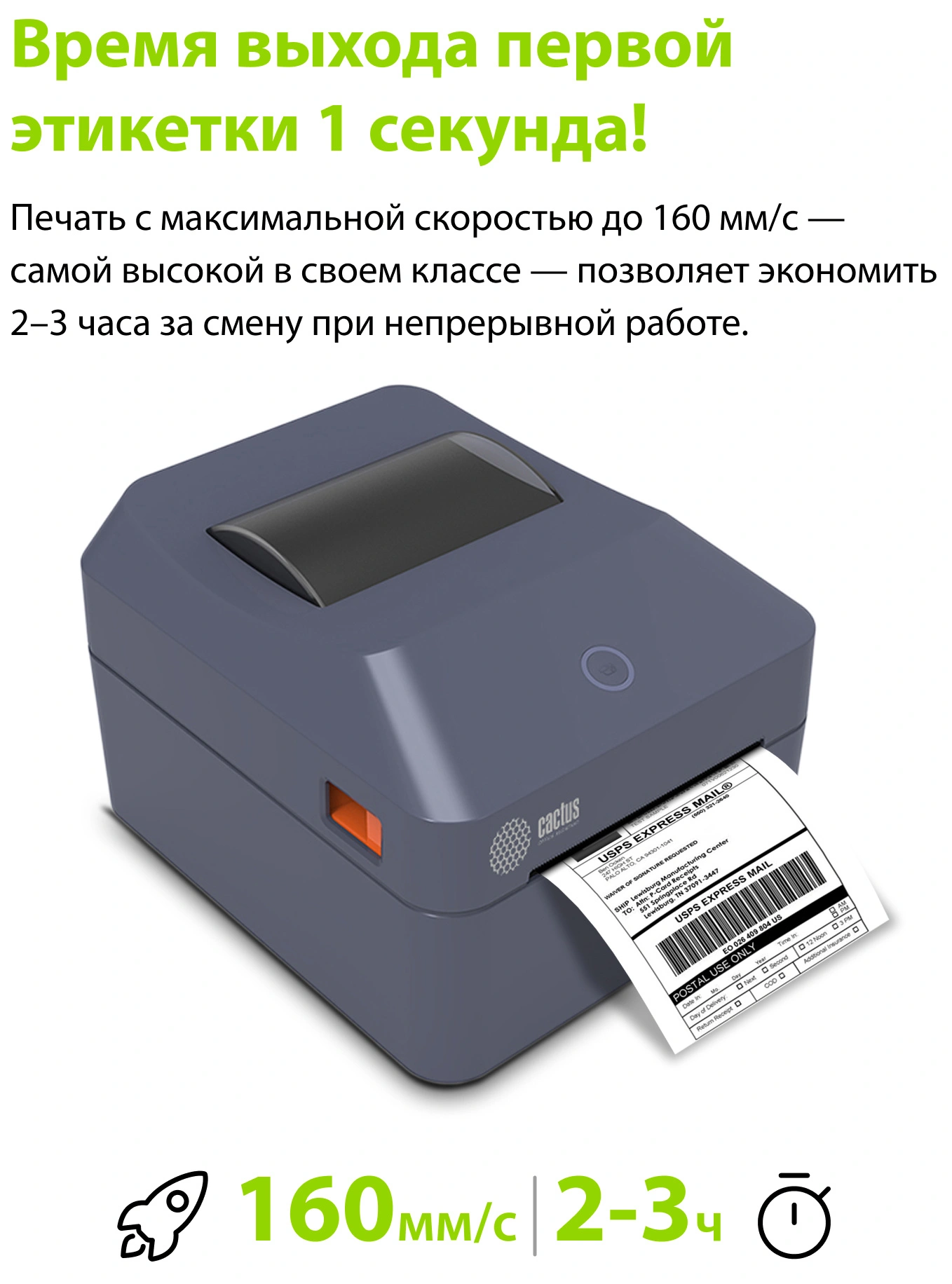 Термопринтер Cactus CS-TP-D430UB 203dpi 160мм/с/USB/BT для печ.этик. черный