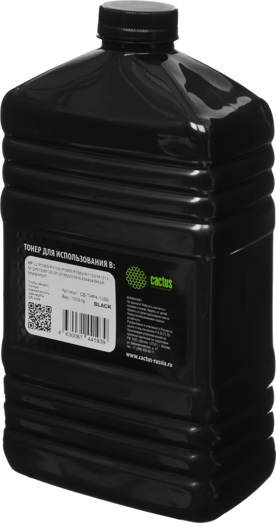 Тонер Cactus CS-THP4-1000 черный флакон 1000гр. для принтера HP LJ P1005/P1006/P1100/P1102