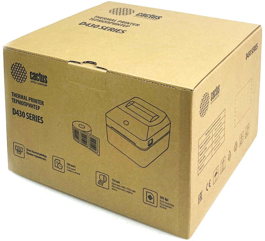 Модель CS-TP-D430UB PartNumber/Артикул Производителя CS-TP-D430UB Бренд CACTUS Тип Термопринтер Форм-фактор стационарный Технология печати прямая термопечать Скорость печати, до (мм/сек) 160 Разрешение печати 203 dpi Штрихкоды UPC-A/UPC-E/JAN13 (EAN13)/JAN8 (EAN8)/CODE39/ITF/CODABAR/CODE93/CODE128, QR-КОД,PDF417 Языки TSPL /CPCL/ESC/POS Подключение по USB ДА Цвет черный Назначение для этикеток Подключение по Bluetooth ДА Габариты упаковки (ед) ДхШхВ 0.25x0.24x0.17 Вес упаковки (ед) 1.6 Объем упаковки (ед) 0.0102 -